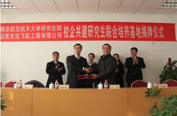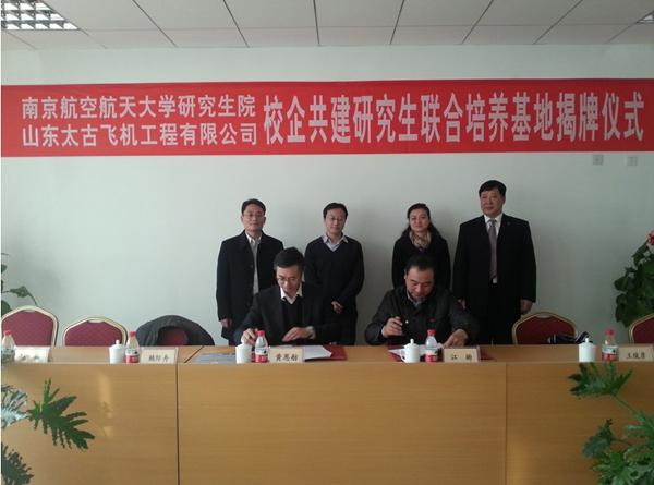 2013年12月6日,我校与山东太古飞机工程有限公司共建研究生联合培养基地签字暨挂牌仪式在济南顺利举行。出席仪式的有山东太古飞机工程有限公司总经理黄恩舫、副总经理杨光耀、培训部韩勇强经理、技术中心顾辉主任、技术工程部常城经理,南航大研究生院副院长江驹、欧美色情 副院长赖际舟、电气工程系副主任陈新以及公司所有领导和部分员工,签字挂牌仪式由韩勇强主持。