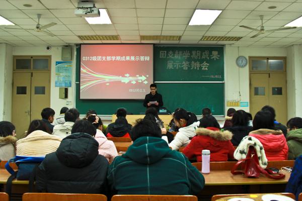 12月26日晚,我院2012级基层团支部学期成果展示答辩会在将军路校区6102教室举行。辅导员韩楚、12级团总支书记邵陈懋、中心组组长郭铠源以及团总支各部门主要学生干部出席了本次答辩会并担任评委。会议由年级团总支宣传部副部长周潇庆主持。