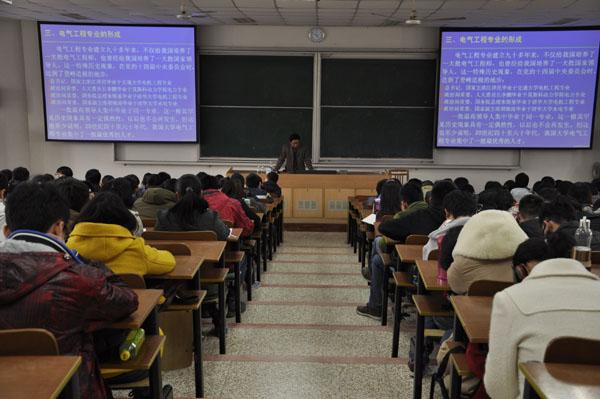 2014年3月21日下午4点,我院电气工程及其自动化专业介绍会在4101教室举行。介绍会由电气工程系周波教授主讲,大一电气专业班主任代表张卓然、龚春英老师,电气专业的全体大一同学以及部分想要了解电气工程及其自动化专业的非本专业同学参加了此次介绍会。大一辅导员何朋主持了本次介绍会。
