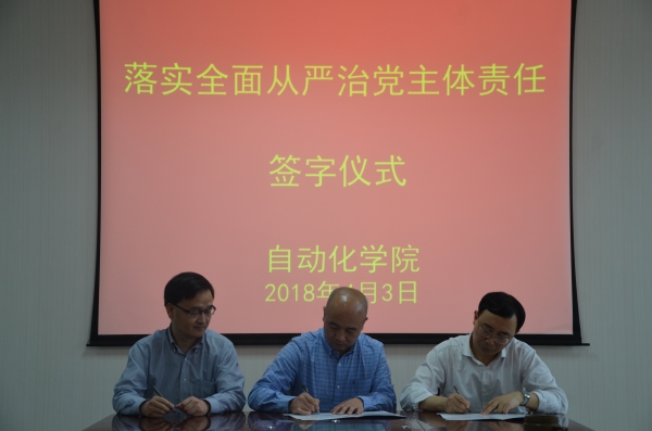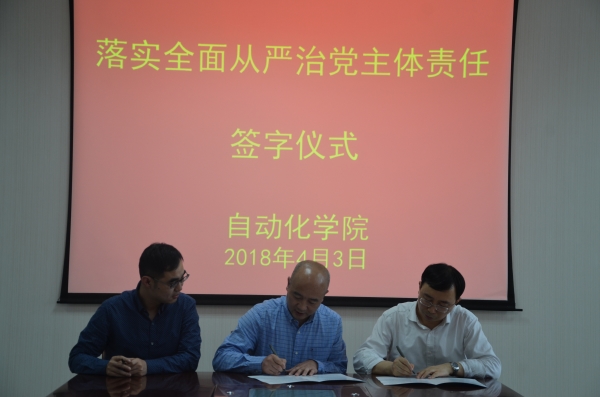 为学习贯彻党的十九大、校第十六次党代会精神和学校全面从严治党决策部署工作会议精神,按照关于落实全面从严治党主体责任要求,扎实推进学院全面从严治党、党风廉政建设和反腐败斗争向纵深发展,层层压紧压实全面从严治党主体责任,欧美色情 于2018年4月3日,在学院一号楼405会议室举行落实全面从严治党主体责任的责任书签订仪式。学院全体党政领导、院长助理及各基层单位党支部书记、系主任参加了会议,会议由学院党委书记刘建成主持。