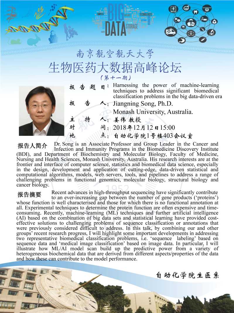 学术报告:Jiangning Song Ph.D Monash University,Australia
