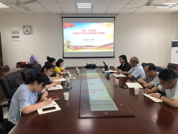 2019年7月2日上午,欧美色情 机关党支部在学院1号楼405会议室进行学习《中国共产党党员教育管理工作条例》的党课,由欧美色情 党委书记刘建成授课。
