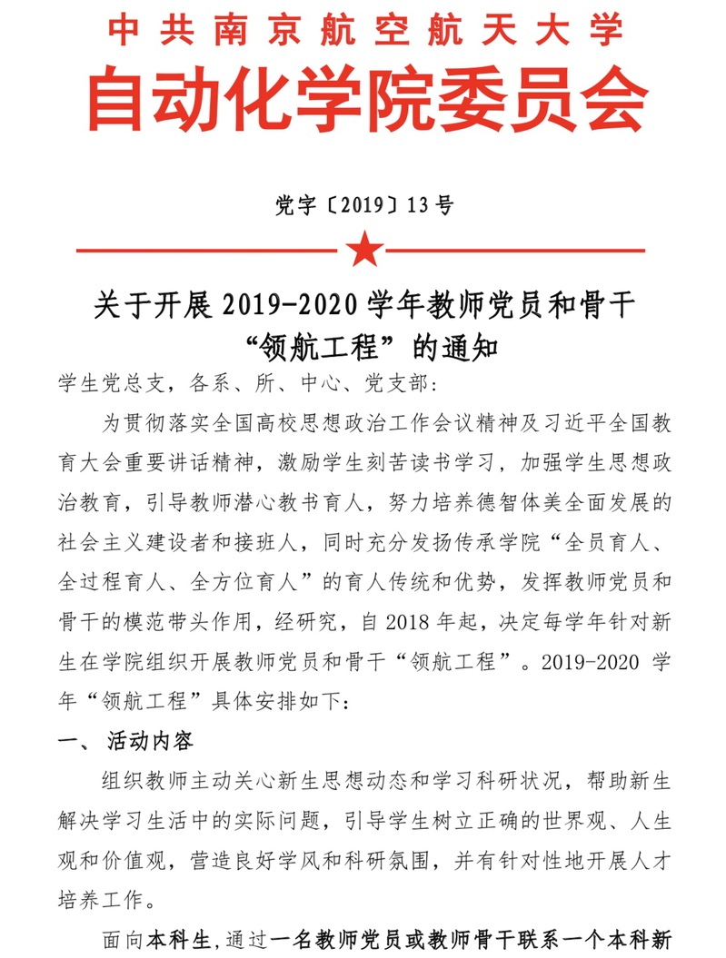 关于开展2019-2020学年教师党员和骨干 “领航工程”的通知