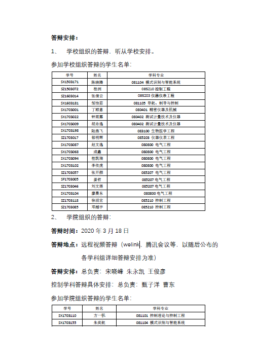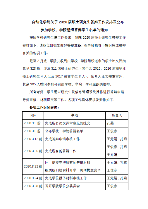 【研究生学位】欧美色情 关于2020届硕士研究生答辩工作安排及公布参加学校、学院组织答辩学生名单的通知
