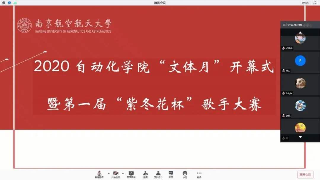 2020年6月6日下午15:00,欧美色情 第十四届“文体月”开幕式暨第一届“紫冬花杯”歌手大赛初赛顺利举行。受疫情影响,本届“文体月”活动采取线上举办的方式。学院党委副书记张跃老师、院团委书记陈慧云老师、研究生辅导员汤呈懿和王明月老师、本科生辅导员汪明锐和宋欣老师作为嘉宾线上出席了本次开幕式。