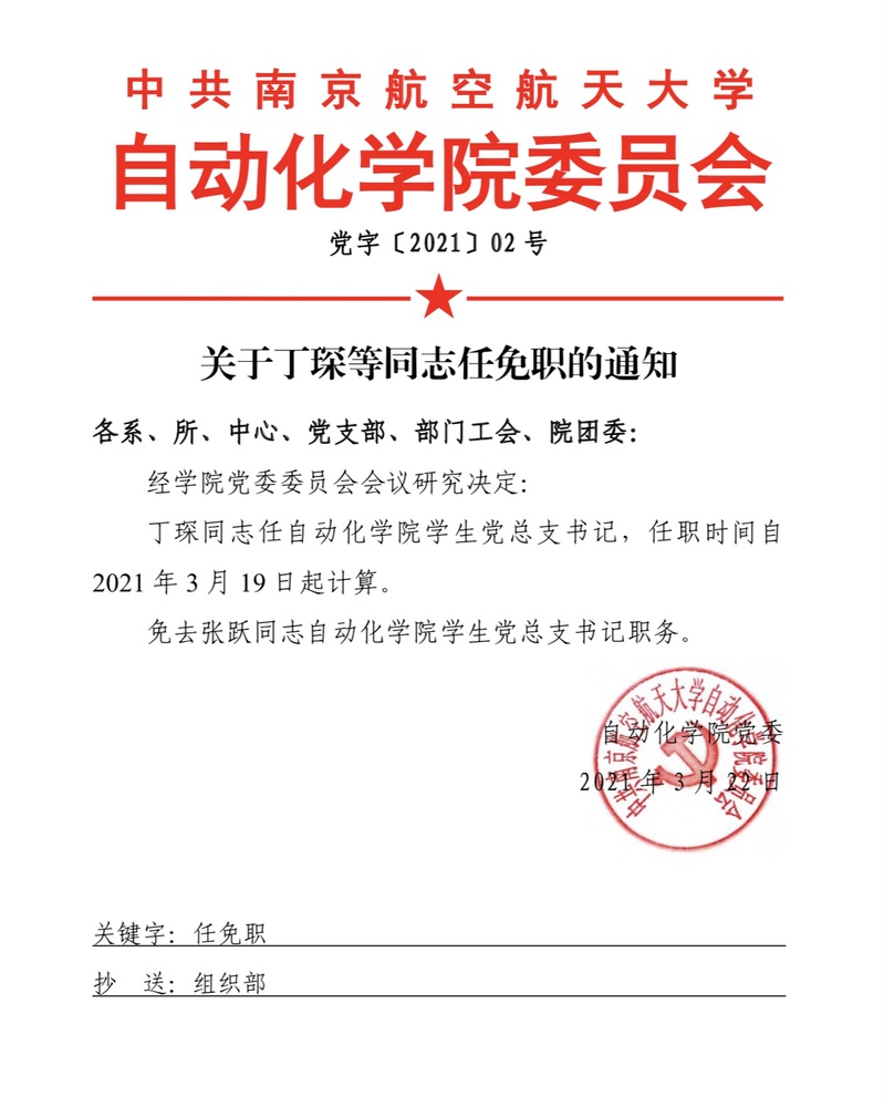 关于丁琛等同志任免职的通知