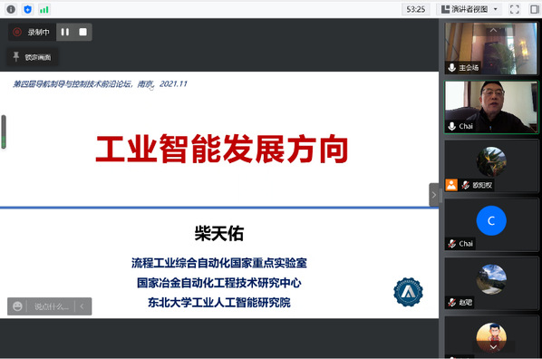 IEEE Fellow、IFAC Fellow、东北大学学术委员会主任、《自动化学报》主编、流程工业综合自动化国家重点实验室主任、国家冶金自动化工程技术研究中心主任、中国工程院院士柴天佑教授,中国微米纳米技术学会会士、南开大学英才教授、人工智能学院院长赵新教授,“长江”学者、国家“杰青”、大连理工大学电子信息与电气工程学部部长孙希明教授,国家“杰青”、华东理工大学信息科学与工程学院院长钟伟民教授,国家“杰青”、国家 “百千万人才工程”入选者,大连理工大学控制学院赵珺教授,通过线上方式出席了本次会议。