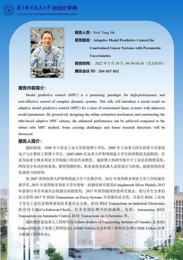 【学术报告】Adaptive Model Predictive Control for Constrained Linear Systems with Parametric Uncertainties