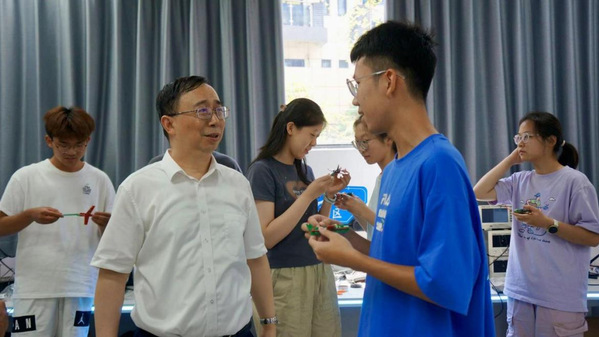 在迎新期间,校长姜斌一行来到迎新现场、学院科创空间与学生宿舍,关心新生报到情况并给予真挚问候。姜斌详细地了解了学院以“探索·筑梦”为主题开展的科创启蒙迎新活动,对同学们给予深切的鼓励。他勉励自动化学子不仅要成为高精技术的探索者,在自动化的海洋中深耕细作,更要勇于挑战传统,敢于突破常规,以创新的思维和方法推动自动化技术在航空航天领域的应用与发展,不断攀登科技高峰。