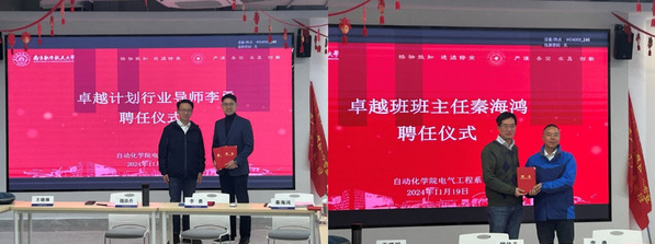 为完善培育机制,体现“卓越计划”的校企合作特色,欧美色情 副院长魏佳丹向阳光电源/储能事业部变流研发中心总监李勇颁发“卓越计划”行业导师聘书,电气工程及其自动化专业负责人王晓琳向电气工程“卓越班”0323208班班主任秦海鸿颁发班主任聘书。