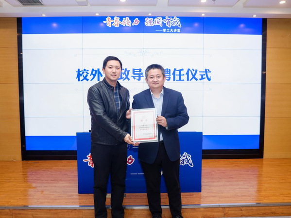 常勇1988年进入南京航空学院自动控制系电气工程及其自动化专业学习。2002年于欧美色情 获电子与信息工程硕士学位,2013年于欧美色情 获得系统工程工学博士学位,本科毕业后历经航空工业光电所多个部门,从技术员成长为领导者,2019年起,先后担任航空工业电子及曙光的重要职务。报告会上,丁琛为常勇颁发“校外思政导师”聘书并举行聘任仪式。