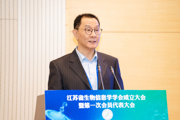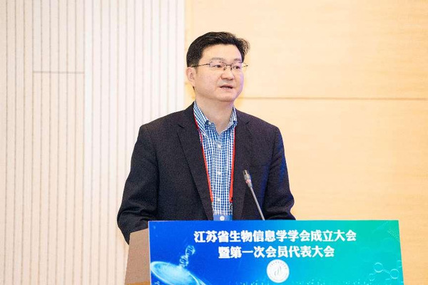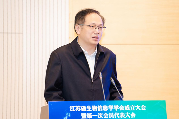 省科协副主席冯少东在大会致辞,对学会成立表示热烈祝贺。他指出生物信息学作为一门前沿交叉学科,在精准医疗及健康大数据等领域应用潜力巨大,是抢占生命科学制高点、培育新质生产力的战略抓手。江苏已汇聚该领域众多专业人才与优质科研平台,学会的成立将进一步整合资源,搭建跨学科融合桥梁,加速技术攻关与产业转化。他对学会提出四点要求:强化政治引领,凝聚科技工作者力量;深化产学研协作,推动学术成果落地;打造高端学术品牌,提升学科影响力;加强科普宣传,服务全民科学素养提升。省科协将持续提供政策与资源支持,助力学会建设国内一流科技社团,为江苏建设科技强省、服务“健康中国”战略注入强劲动能。