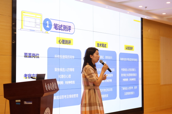 王秋楠以《来自企业视角的就业指导》为主题,围绕“就业准备”“简历设计”与“面试技巧”三大模块展开讲解。结合科大讯飞的校园招聘案例,深入分析了当前就业市场形势。她指出,2026届毕业生规模再创新高,各类学历层次毕业生的就业竞争将更为激烈,提醒同学们既要锚定职业方向,更需主动认清行业趋势与竞争环境,提前做好充分准备。