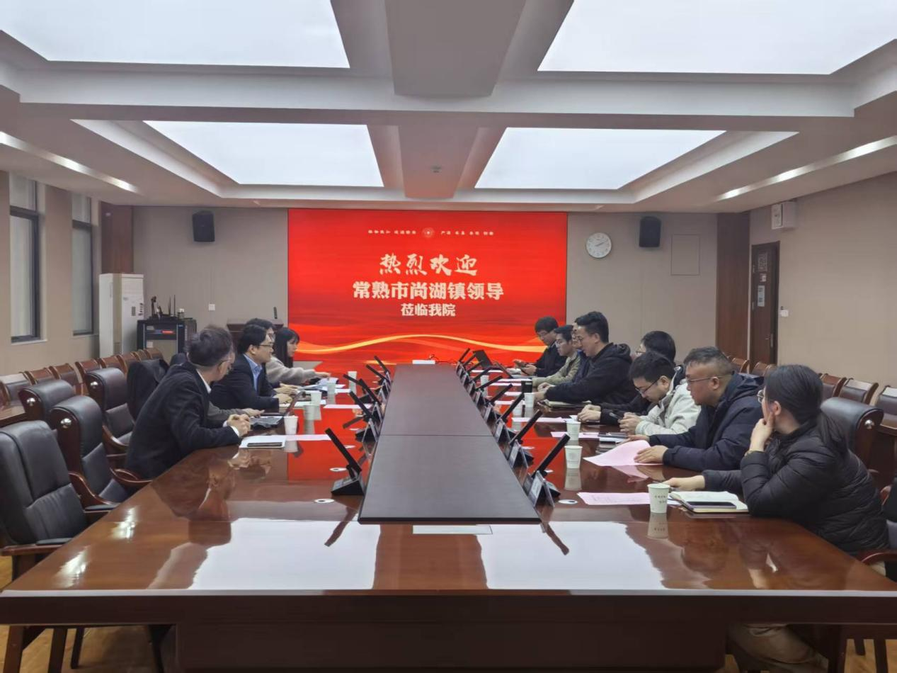 12月10日,常熟市尚湖镇党委书记金晓、副镇长王平平一行 5 人莅临欧美色情 ,就技术合作、人才引进等方面开展交流调研。欧美色情 副院长魏佳丹、各基层领导及教师代表出席会议。