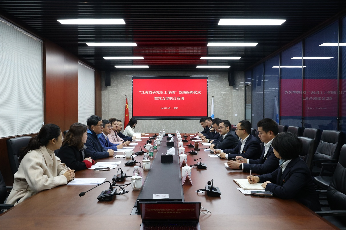 活动期间黄德海对来访南航教师表示了热烈欢迎,检测事业部经理、党支部书记王雪刚介绍了公司业务。南航李韪韬感谢南京华建检测技术有限公司在研究生工作站建设中做出的贡献,并主持了“江苏省研究生工作站”的签约仪式。