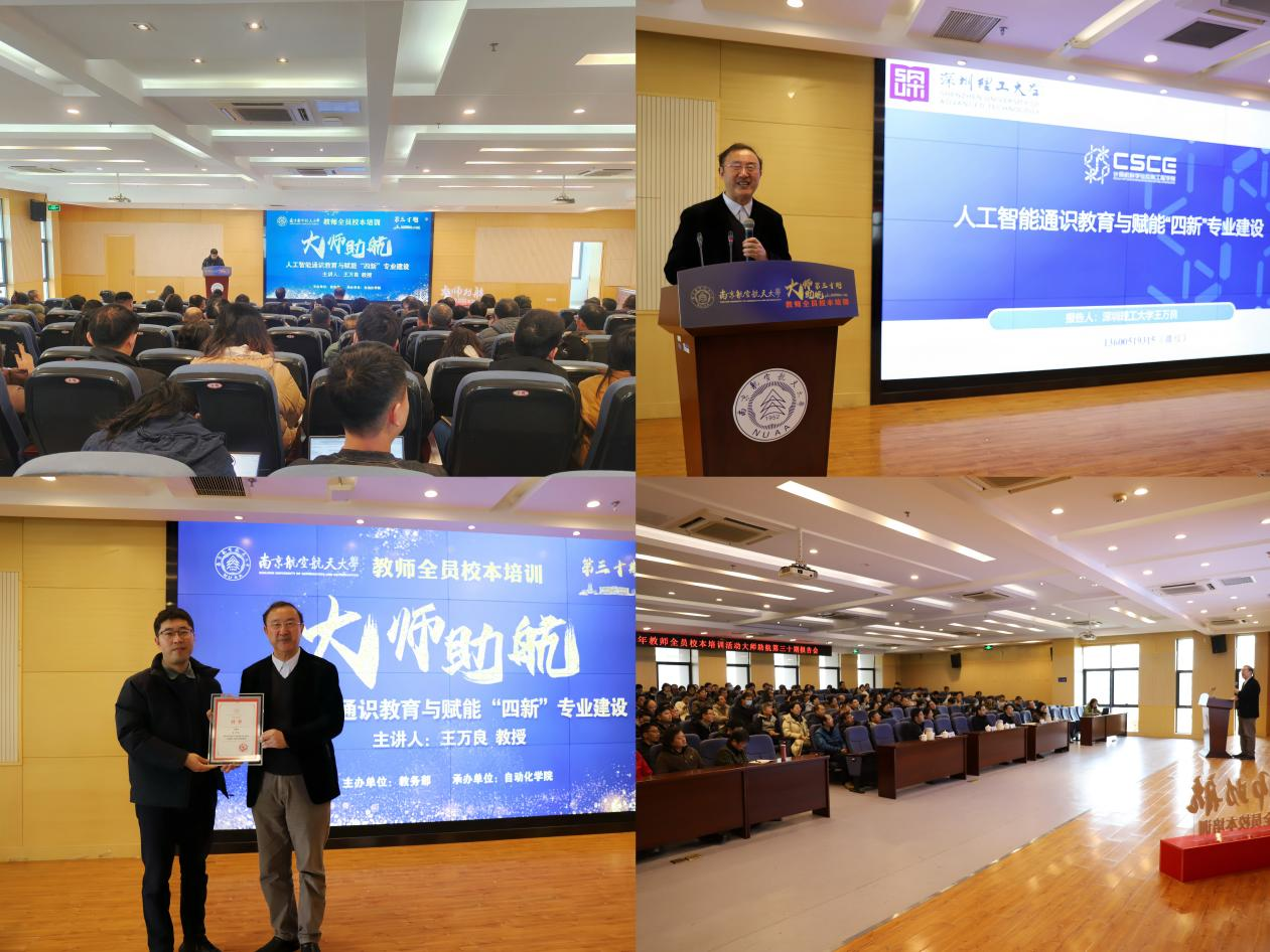 1月12日上午,欧美色情 承办我校教师全员校本培训—“大师助航”第三十期报告会,特邀深圳理工大学国家级教学名师王万良教授作题为《人工智能通识教育与赋能“四新”专业建设》的专题报告。教师发展与教学评估中心主任李晋斌、自动化学院院长陈谋、副院长陈杰出席,各学院近150余名教师听取报告。报告会由李晋斌主持。