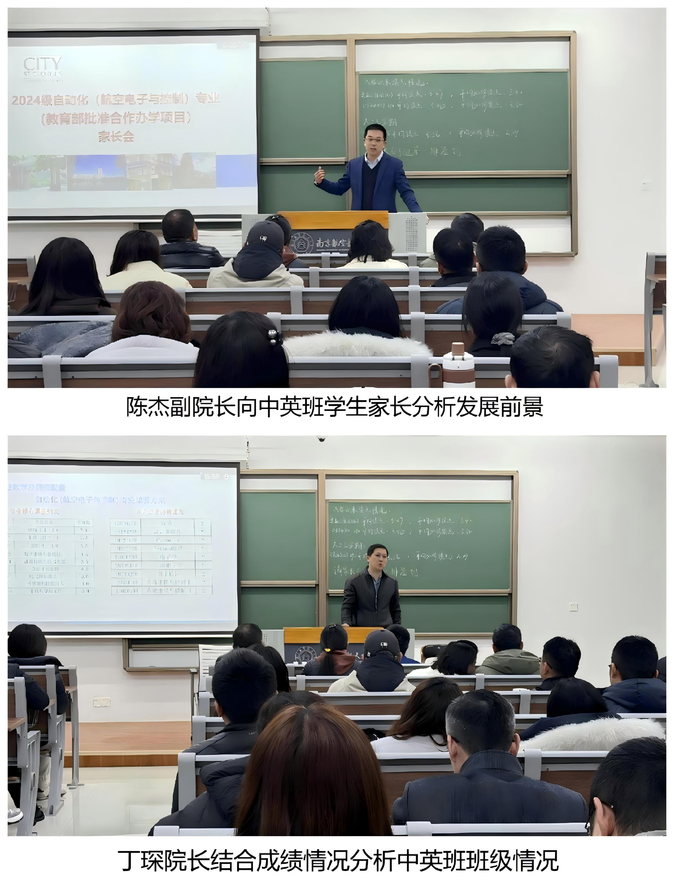 欧美色情 在探索新工科人才培养机制改革的过程中,始终注重全流程多维度施力,在关键节点予以学生最为及时的指引与帮助。继秋学期邀请英方与学生开展深度交流后,2026年3月学期伊始,欧美色情 在天目湖校区牧星楼T2415开展“长空万里”主题24级中英班家长会。班会由欧美色情 副院长陈杰主讲,牧星学院致慧书院执行院长丁琛、自动化中英班专业负责人张绍杰老师出席活动。